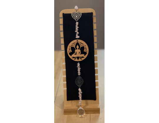 Il mesure environs 27 à 30 cm - Il a été créer en exclusivité par univers Bonheur. Il est composé d'une boule de verre cristal, de pampilles en métal argenté ou doré, d'un symbole en bois, et de pierres. Selon la tradition Feng-Shui, le pendant est fait pour être mis sur une fenêtre afin que quand le soleil passe et envoie des énergies positive dans la pièce.
